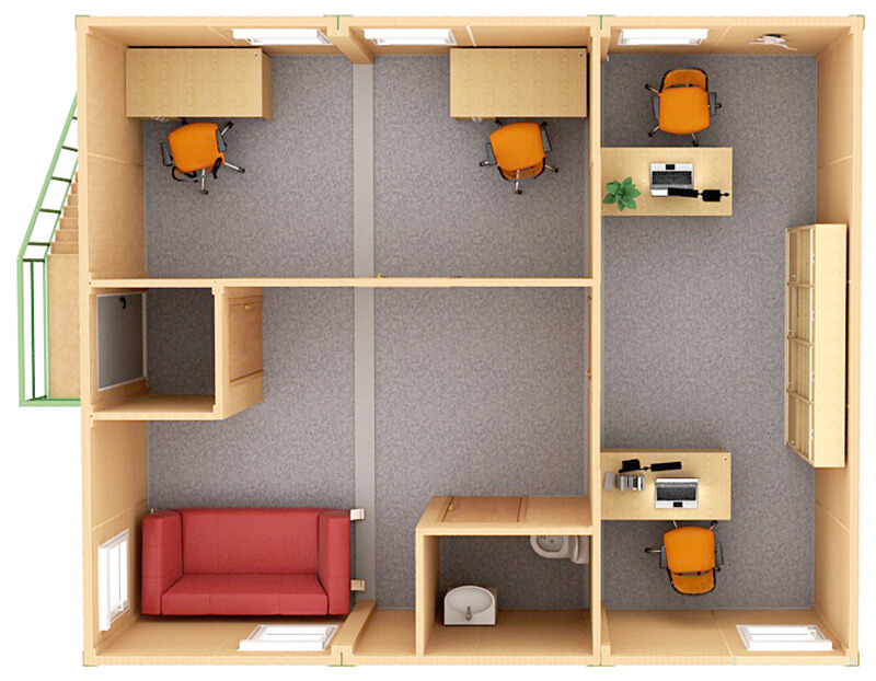 Эстетичный внешний вид подчеркнет статус компании, качественная внутренняя отделка, даже в комплектации «Стандарт» OSB-плита довольно комфортабельна.